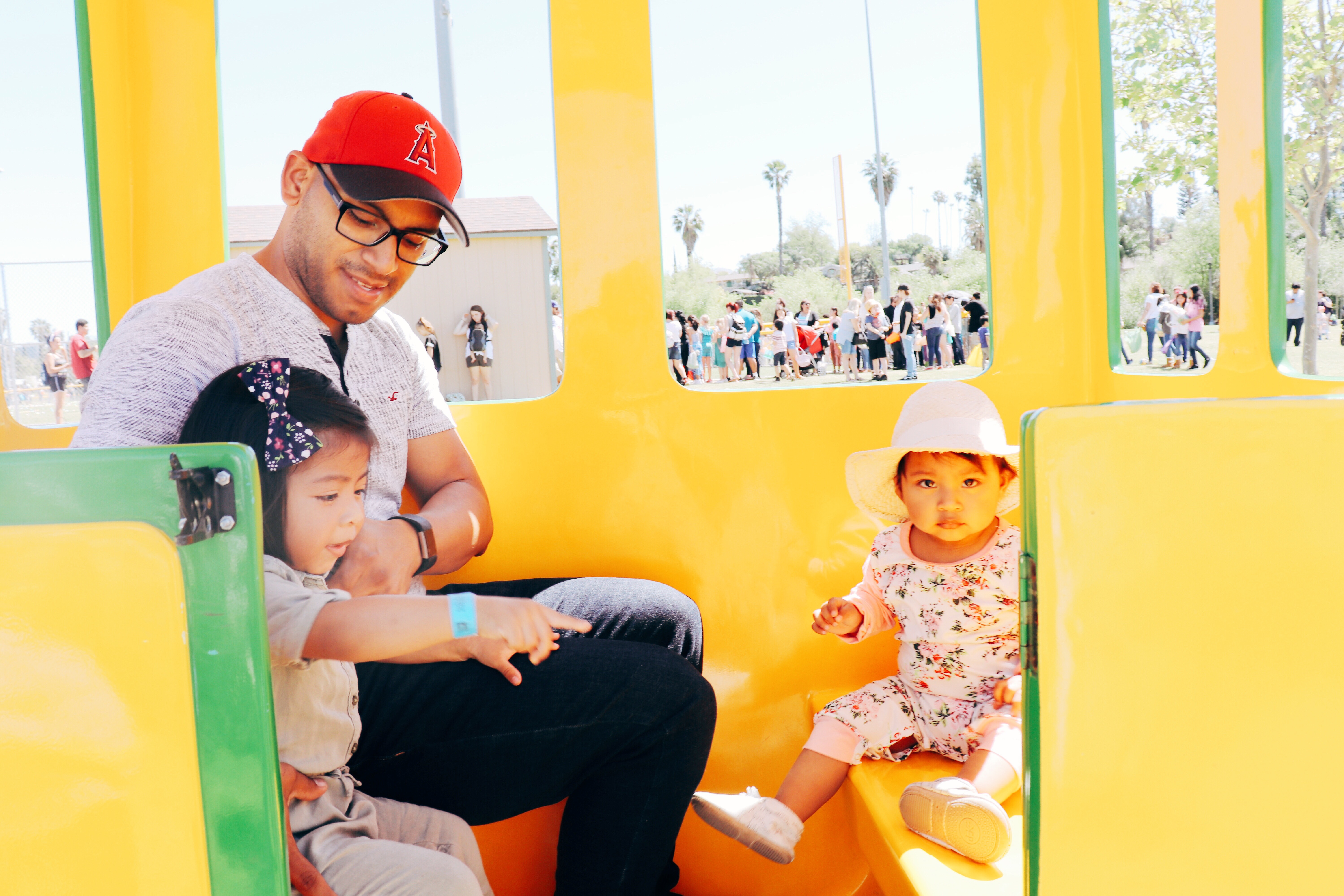 It was also our first time taking them to our local city “Eggstravaganza” over the weekend. There was a train ride, a bounce house, food and other activities for the whole family besides the egg hunt.