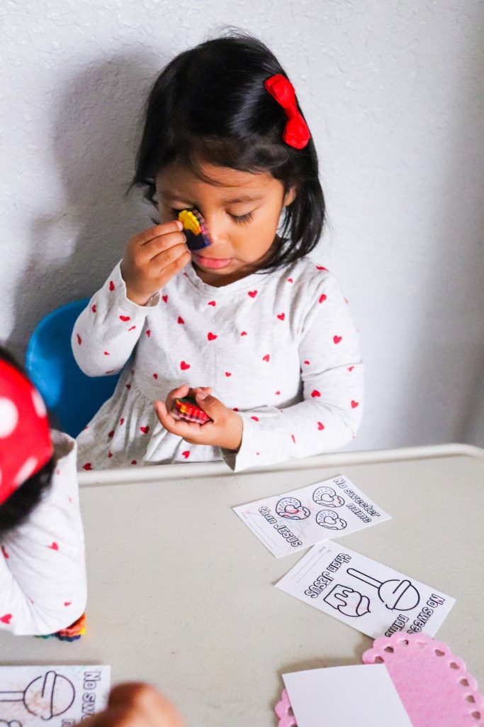 As we walked by the Valentine’s aisles at the store I suggested to Emma if she preferred to make something to give out instead. It was an instant yes!