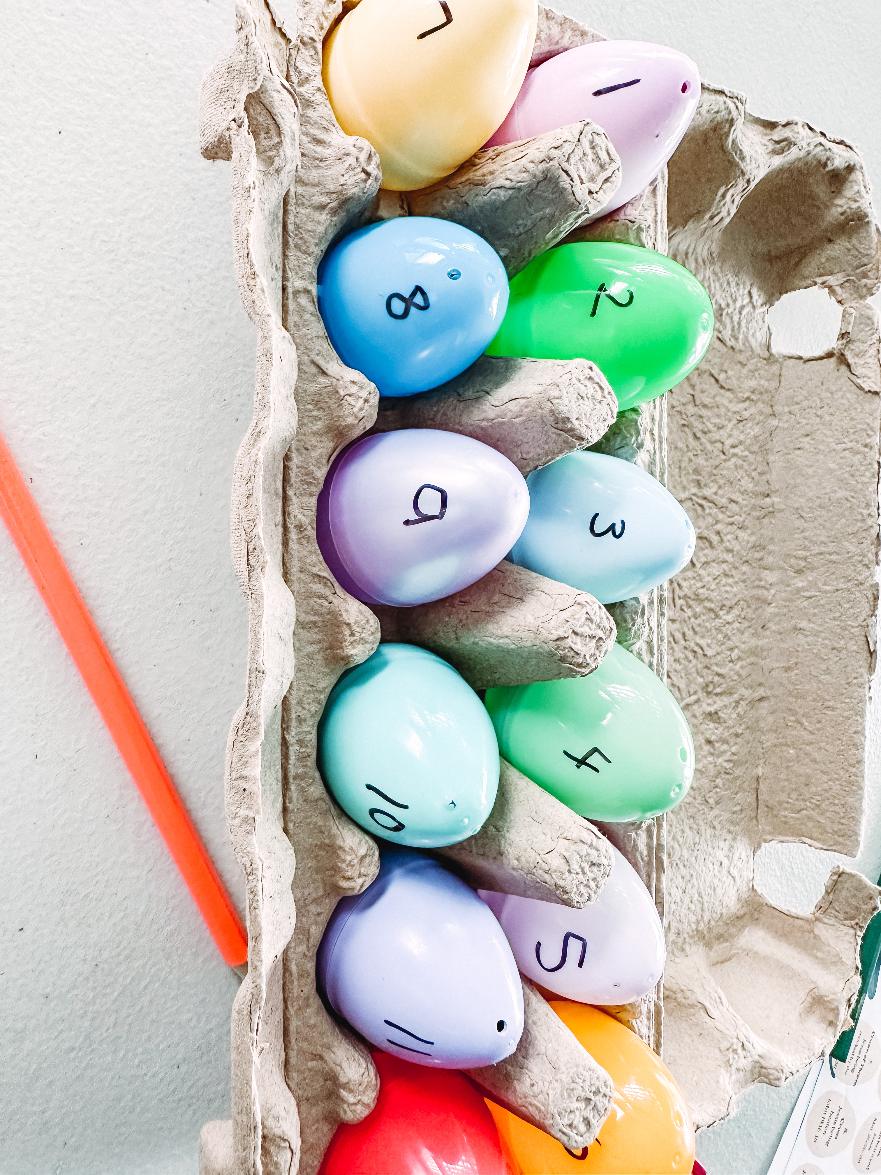 Prep the eggs by writing the numbers 1-12 on them with a Sharpie.