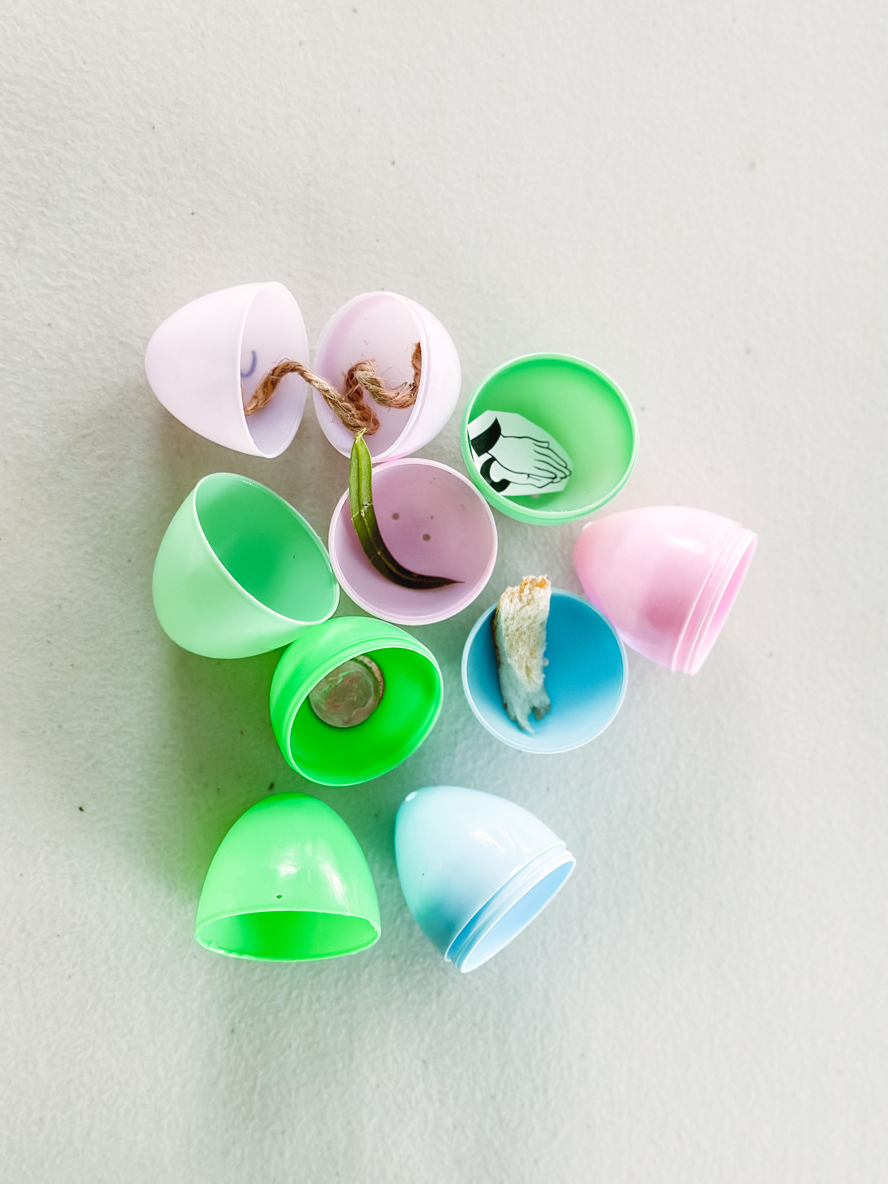We started doing Resurrection Eggs a couple years ago and immediately fell in love with how it lead our children through the story of Easter. We love it so much that I had to share it with all of you! Each egg contains an object that correlates with a scripture. This year I added a second option for those that may not have the physical items to put in the eggs, but there is a printable option that kids can cut and insert a slip to each egg.